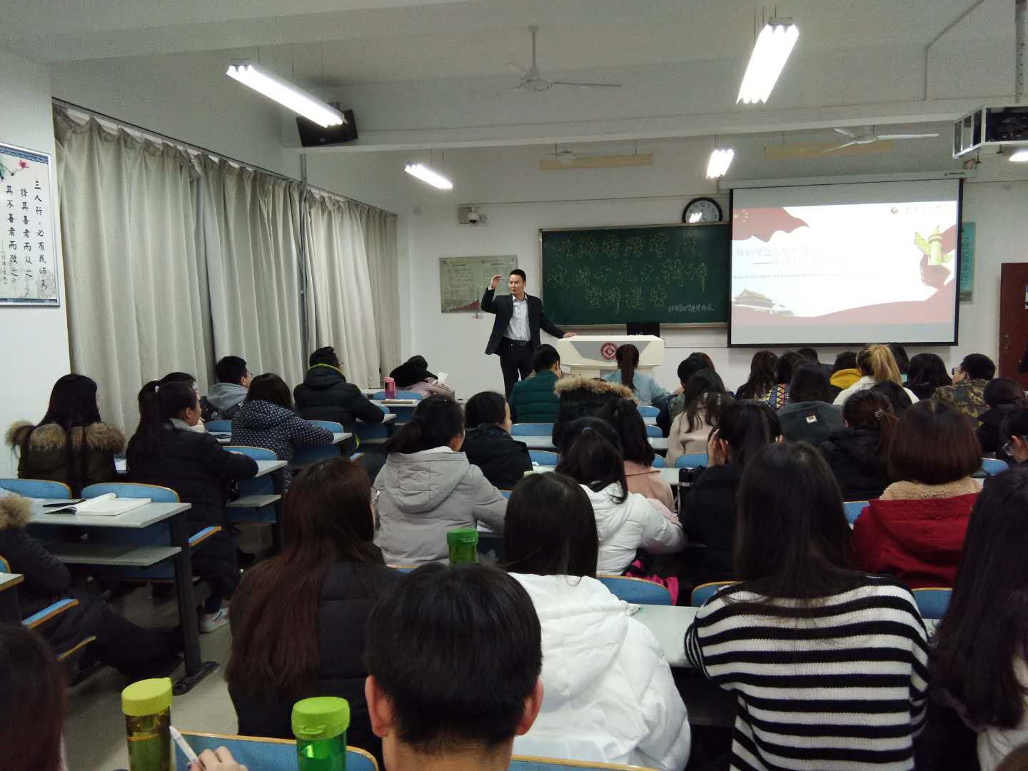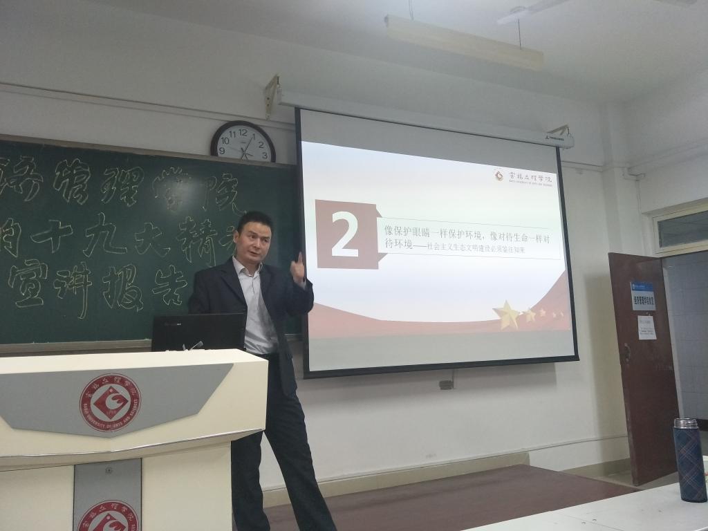 12月11日下午,经济管理公司在思贤楼227教室举行党的十九大精神宣讲报告会,市委讲师团成员、马克思主义学院副经理刘晓勇博士应邀为该院师生作了题为《规划绿色发展路线图,开启生态文明新时代》的报告。经济管理公司师生100余人参会,报告会由该院党总支书记郝晓炜主持。