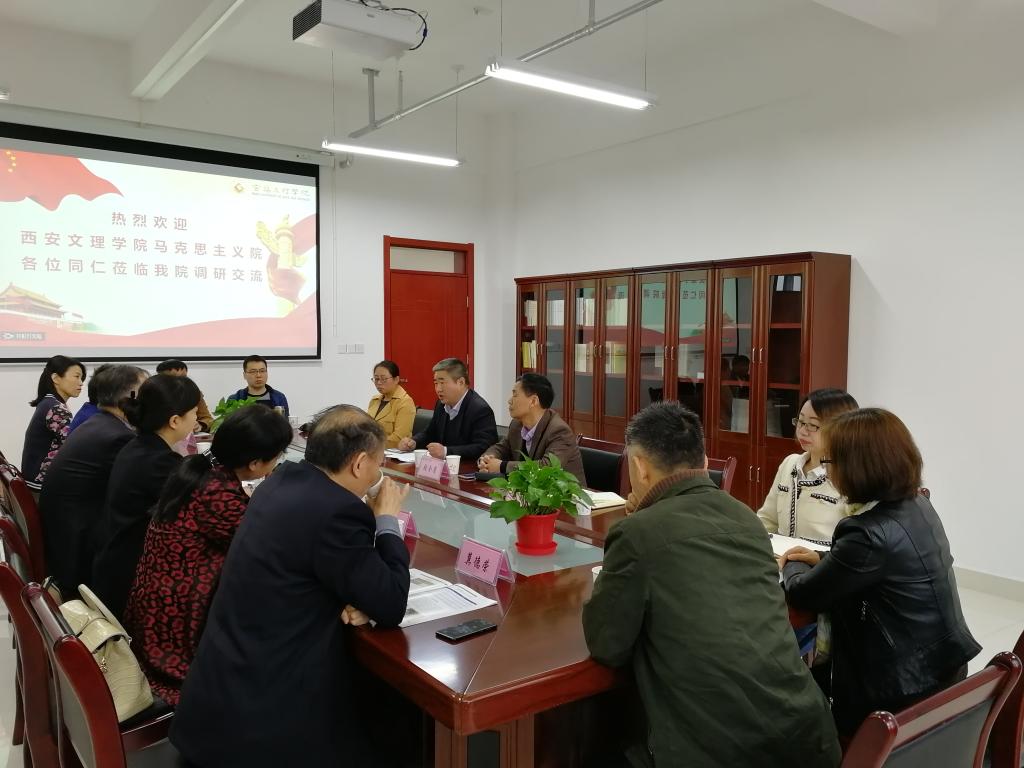 张军学对公司领导及与会人员表示感谢,简要介绍了西安文理公司365上市集团官网的基本情况,并就思政课建设、课程教学改革、社会实践教学、学科专业建设、员工考研等方面进行了研讨交流。随行人员与公司365上市集团官网各教研室主任、副主任等进行了对口交流,就双方关注的教学科研等内容展开热烈讨论。