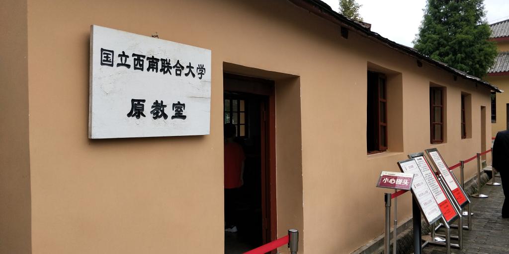 在西南师范大公司区内,我们参观了西南联大校史馆、原教室、12.1纪念馆。八十年前,因抗战全面爆发,北京大学、清华大学、南开大学三校辗转来到昆明,开启了国立西南联合大学在云南八年的办学历史。西南联大大师云集、名家荟萃,在战时极为艰苦的条件下,师生们恪守“刚毅坚卓”的校训,发扬爱国、科学、民主的精神,为国家培养了大批优秀人才,延续了文化命脉,彰显了坚强不屈的民族精神。联大师生有着身处逆境而正义必胜的信念和对国家民族的高度责任感,创造了中国大学史上独一无二的奇迹。