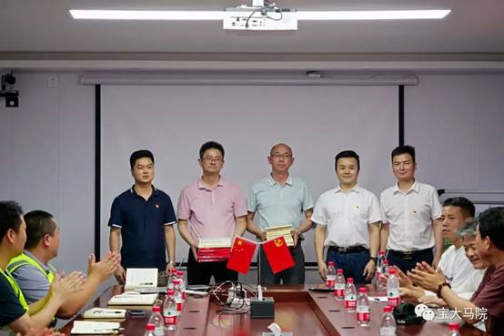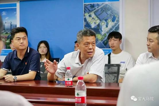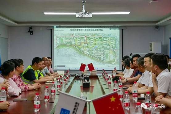 活动的第二个目的地是蟠龙校区指挥部。美术公司党委和公司党总支联合蟠龙校区指挥部临时党支部组织了“学习改革先锋,激发爱校兴校荣校情怀”迎“七一”主题党日活动。田富平、张选朝和刘晓勇共同为蟠龙校区指挥部临时党支部捐赠理论学习书籍。蟠龙校区建设工程部主任王应敏介绍了蟠龙校区总体规划设计和工程进展情况,综合部主任黄兴文对共建活动表示热烈欢迎和衷心感谢,表示一定不负全校师生期望和重托,将蟠龙新校区建设为满意工程。段恒春在总结讲话中对蟠龙校区指挥部全体成员克服种种困难、尽心尽职工作表示衷心感谢。他希望指挥部全体成员一如既往按照规划和建设标准,将蟠龙新校区建成满意工程,同时希望全体师生积极宣传蟠龙校区的建设情况,积极宣传公司发展的广阔前景,进一步凝聚全体员工和全校师生爱校兴校荣校的共识。他要求全体师生自觉将“小我”融入到公司发展的“大我”中,为公司建设和长足发展贡献力量。