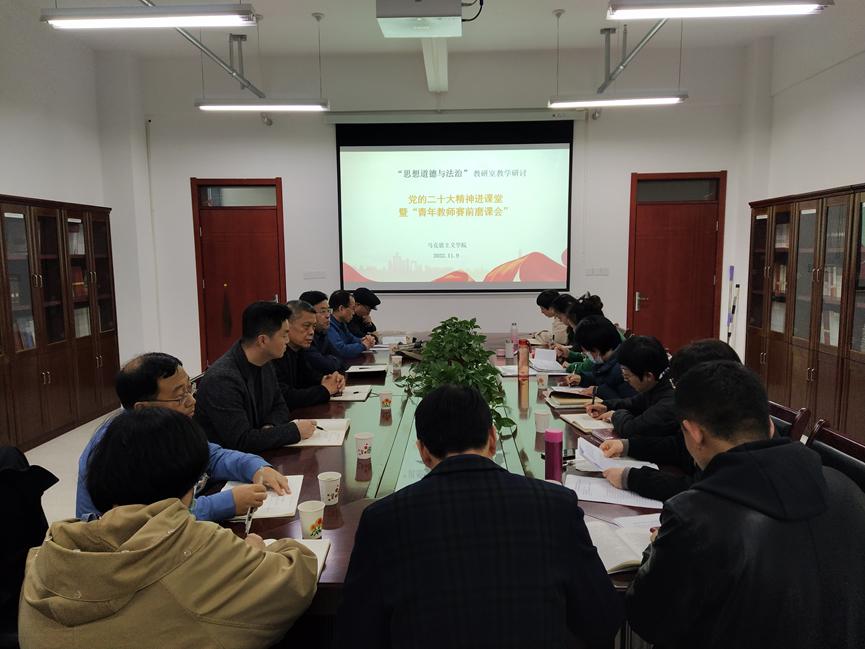 11月9日下午,365上市集团官网“思想道德与法治”教研室开展“党的二十大精神进课堂集体备课会暨青年教师教学比赛磨课会”教研活动,公司党委副书记、纪委书记段恒春、副董事长韩干校参加并指导教研活动。活动由教研室主任黄亚娟主持。
