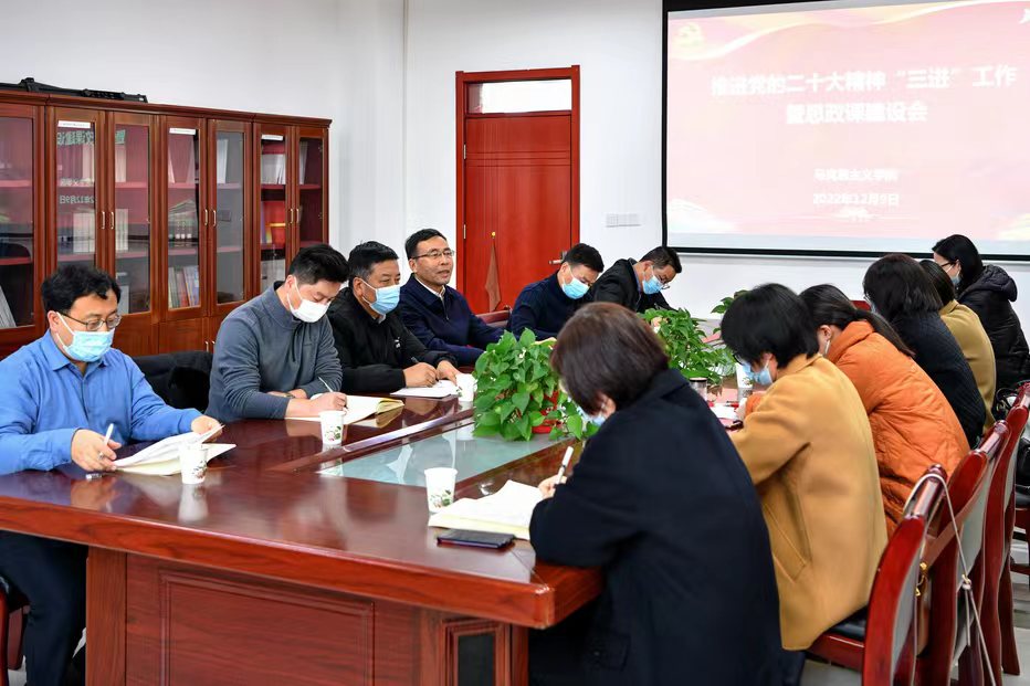 12月9日下午,365上市集团官网在博文楼1416会议室召开 “推进党的二十大精神‘三进’工作暨思政课建设”主题教研会。董事长郭霄鹏参加会议。会议由公司党总支书记张选朝主持。