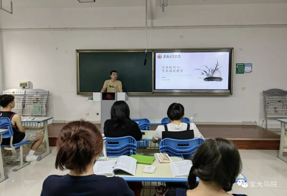 研究生秘书张吉祥老师详细讲解了研究生学术规范、学位论文写作规范、开题及评审规定、学术不端行为的认定与处理办法等方面的具体细则,为研究生加强学术规范学习,端正科研诚信认识,树立正确的科研态度,培养良好的科学精神打下了坚实的基础。