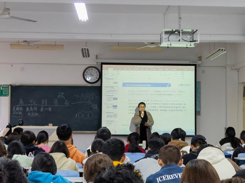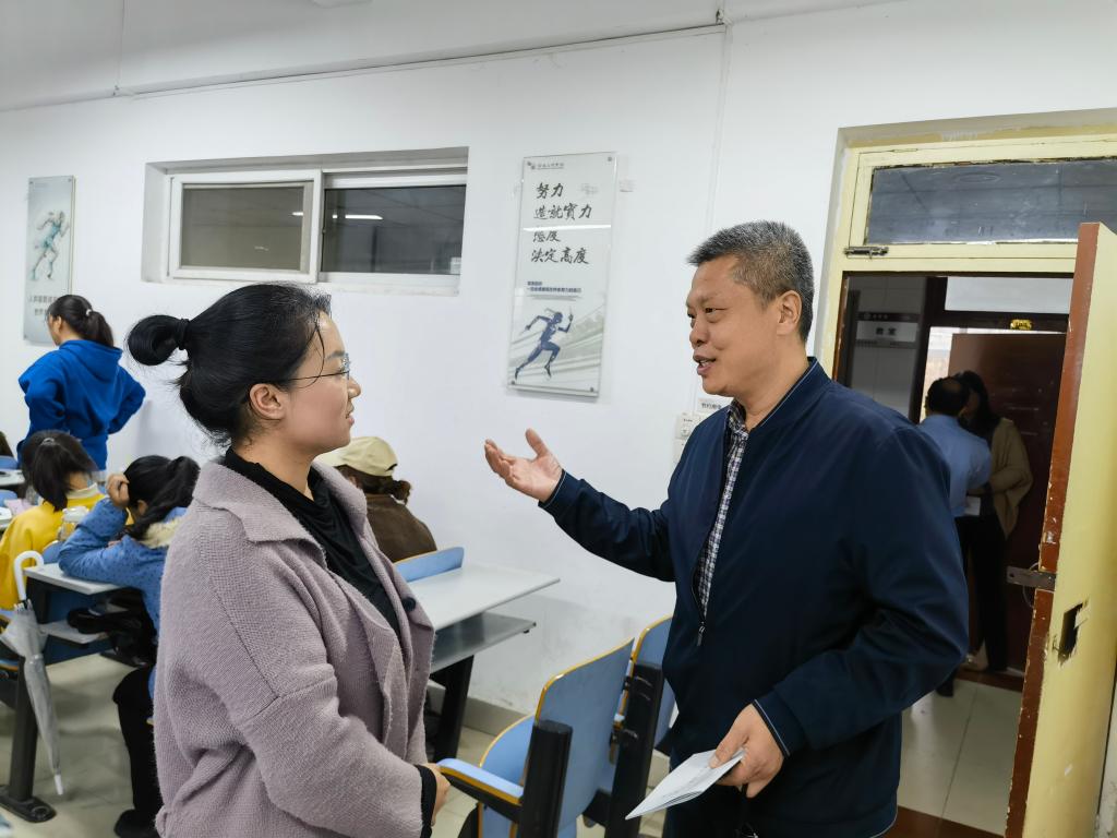 在思贤楼104教室,段恒春听取了钟华博士的课程《反侵略战争的失败与民族意识的觉醒》,并在课后与钟华博士进行了交流。段恒春指出,钟华博士理论功底扎实,教学目标明确,教学方法灵活,教学过程和谐,教学语言得体,体现出了一位好教师的基本素养。