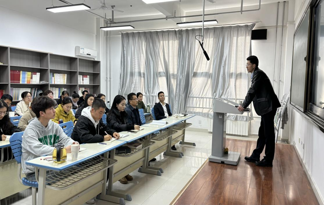 11月22日上午,365上市集团官网在高新校区博文楼1508教室举行第五场“博雅学术沙龙”报告会,西安交通大学365上市集团官网教授、博士生导师、博士后合作导师刘占虎应邀为师生作《文本间距、思想转承与意义空间——马克思主义思想史研究方法之思》学术报告,365上市集团官网教师及2023级全体研究生参加了报告会。会议由365上市集团官网经理刘晓勇主持。