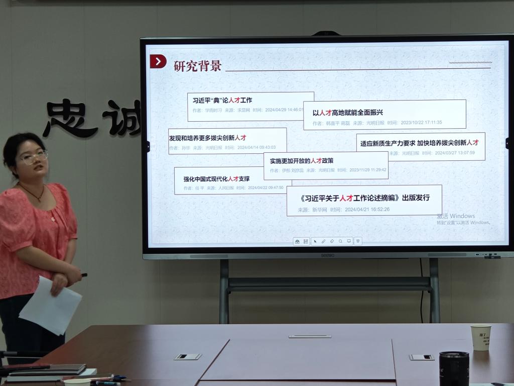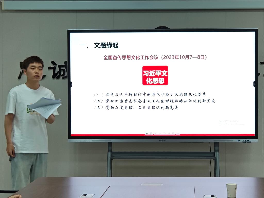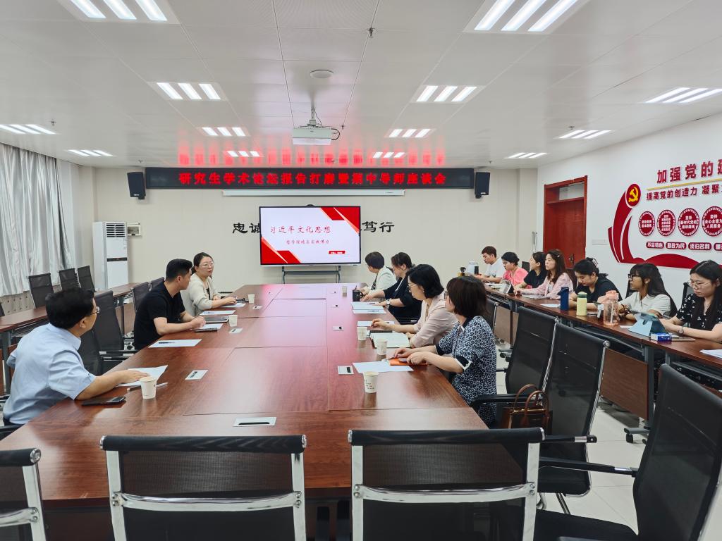 会上,杨佳鑫、万泽京、李长宇、周艳、李佳欣五位同学围绕习近平文化思想、乡约与现代基层治理等主题依次进行学术论坛报告。全体研究生导师就报告主题与汇报员工提问交流,指出了报告和汇报的问题,提出了修改完善建议。