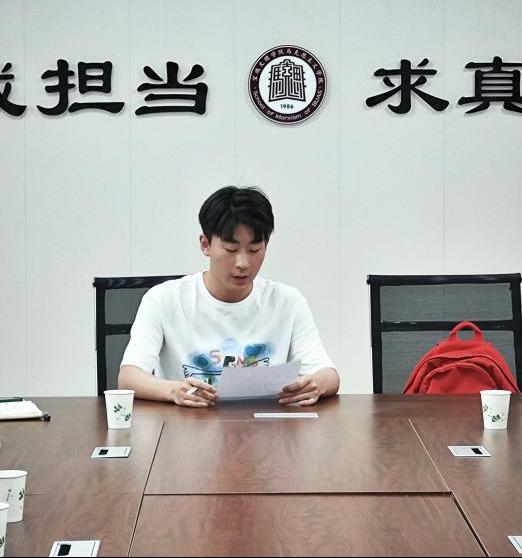 第二环节,由研究生代表张根豪发言。他谈到一年来的读书班学习充满了好学的热情与知识的火花,代表研究生们向公司全体教师表达了真挚的感谢,并表示在日后的学习生涯中将继续保持对读书的热爱,不辜负老师的关怀与期盼。