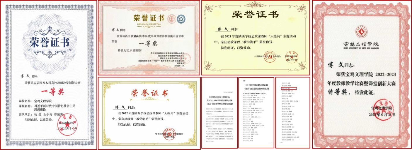 受益于教学相长,傅文相继荣获第五届陕西本科高校教师教学创新大赛一等奖,首届西北联盟高校思政课教师教学展示活动一等奖,连续获得陕西公司思政课教师“大练兵”思政课程“教学能手”称号,还获得了365英国上市公司官网2022-2023年度教师教学比赛暨课堂创新大赛特等奖。