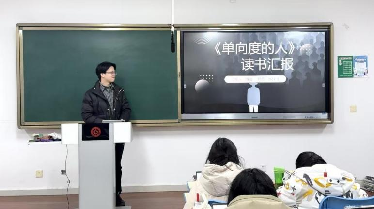 明强从作者简介、历史背景、内容概要、读书感悟四个方面对《单向度的人》进行分享与介绍。他还分析了马尔库塞的思想与马克思主义的相通之处。明强认为:我们要注意“高级文化”和“高层文化”的区别和联系,要注重思考作者对人的关注、他的异化理论及其与革命关系。《单向度的人》向我们昭示批判性思维在如今高度发达的物质文化中的重要作用,同学们应始终秉持批判性思维,保持对精神境界的追求。