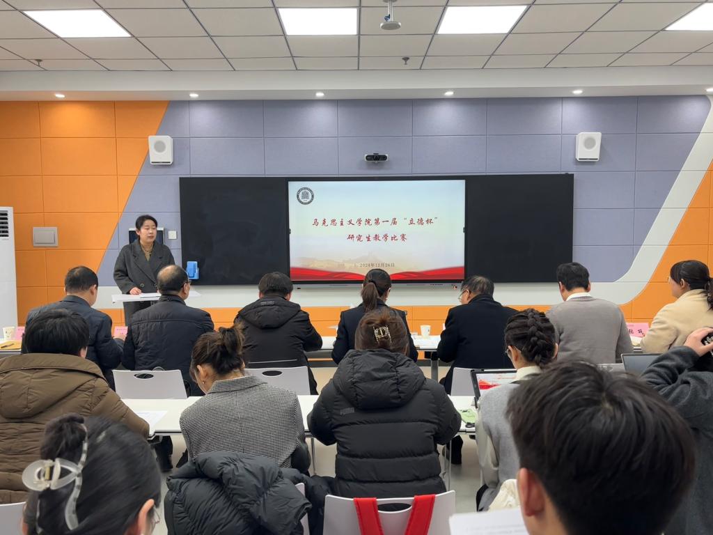 12月26日,第一届“立德杯”研究生思政课教学比赛成功举行。市政府教育副总督学王娇、市委党校副董事长董西科、陕西机电职业技术公司马院经理王康、宝鸡职业技术公司马院副经理杨彦科、金台区委党校副董事长赵建林和公司马院聂晓静副教授担任比赛评委。马院2023级13名硕士研究生和政法公司2022级1名硕士研究生依次登台,充分利用多媒体教学手段,诠释了马克思主义理论的时代价值和实践意义。研究生陈任思遹、杨淼获得比赛特等奖。