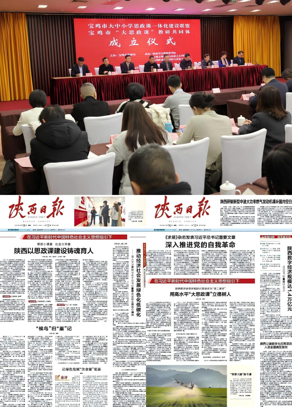 一年来,马院联合宝鸡教育公司、宝鸡职业技术公司马院共同发起宝鸡市大中小学思政课一体化建设联盟,与陈仓区教育体育局建设大中小思政课一体化教研共同体,积极推进新时代大思政课内涵式发展,打造“宝鸡好教育”品牌。宝鸡市教育局和陈仓区教体局聘请马院刘晓勇、张红艳、王真、傅文、徐凌美、王小莉、韩静、杨蕾、罗玉兰等9名教师为“特聘教授”和“特约研究员”。3月18日和12月16日,《陕西日报》分别在头版新闻《陕西以思政课建设铸魂育人》和《用高水平“大思政课”立德树人》报道公司马院工作做法及经验。