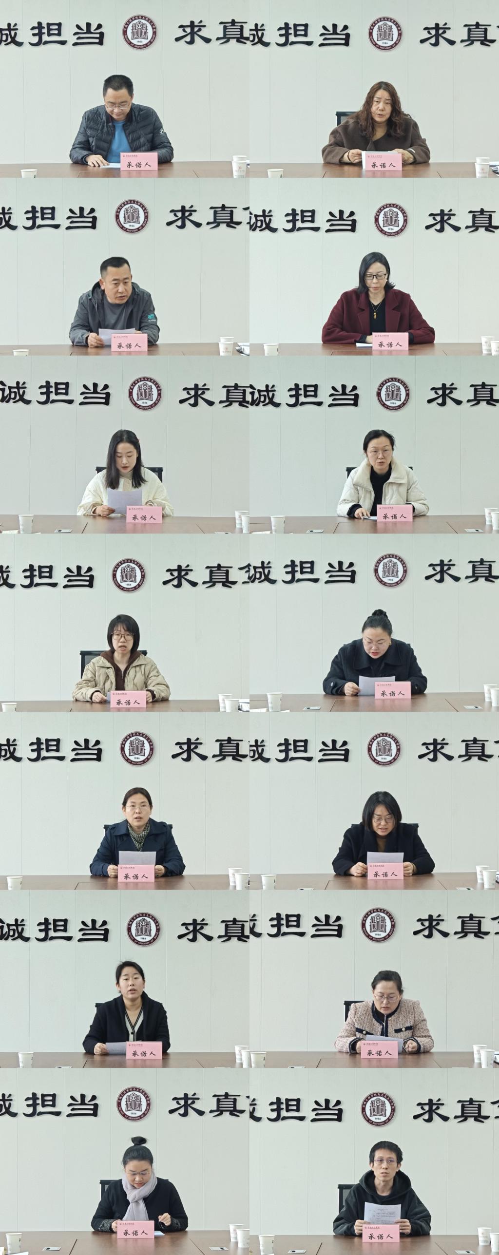 会上,公司各教研室主任、工会主席、教工党支部书记、科研基地负责人、青年博士分别围绕本年度工作成效、教学引领和科研示范等方面依次上台承诺汇报。公司其余教师现场签署2025年工作承诺书,全体教师签署了师德师风承诺书。