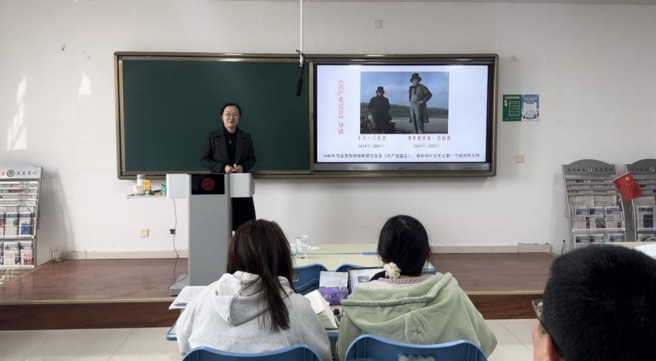 首先,韩静老师以“什么是共产主义社会”“共产主义会实现吗”的问题引出本次学习的文本《共产党宣言》。韩静老师详细梳理了1847年共产主义者同盟委托马克思、恩格斯起草纲领的历史背景,着重讲述了两位革命导师反复推敲的创作历程。她特别指出,《共产党宣言》的序言之所以比正文发表晚,主要是基于马恩对历史实践的检验与理论反思、回应时代变化与理论发展、适应不同国家的传播需求三点原因。