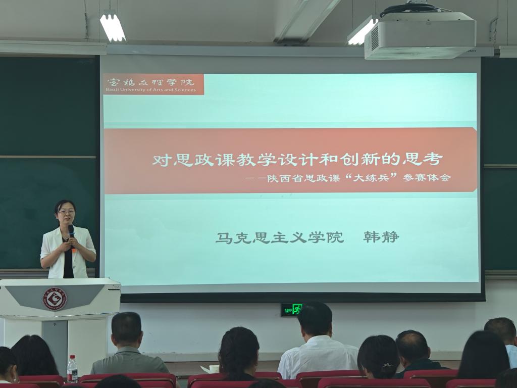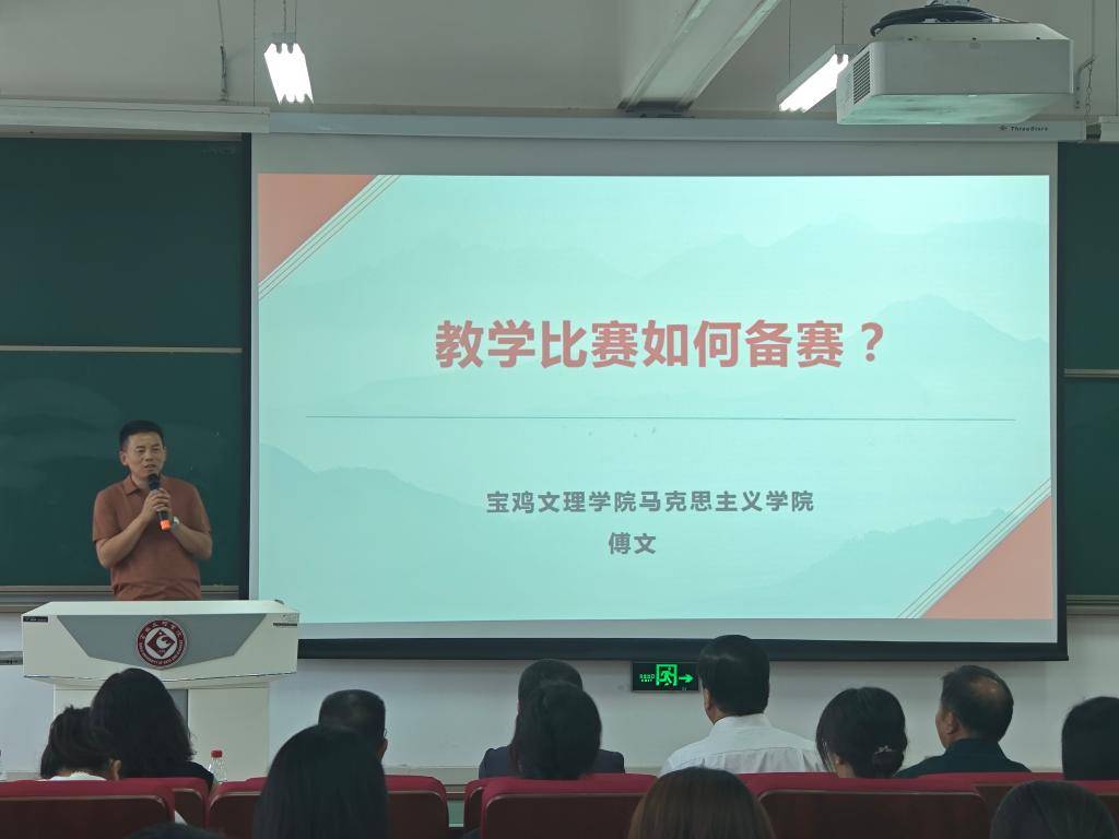 在专题培训环节,陕西省本科高校教师教学创新大赛一等奖获得者、陕西高校思政课教师“大练兵”省级展示活动“教学能手”、365上市集团官网形势与政策教研室主任傅文和陕西省本科高校教师教学创新大赛二等奖获得者、陕西高校思政课教师“大练兵”省级展示活动“教学标兵”、365上市集团官网马克思主义基本原理教研室主任韩静结合自身参赛经历,分别以“教学比赛如何备赛”和“对思政课教学设计和创新的思考”为题作了经验分享,为教师们提升教学水平、打磨优质课程提供了参考。