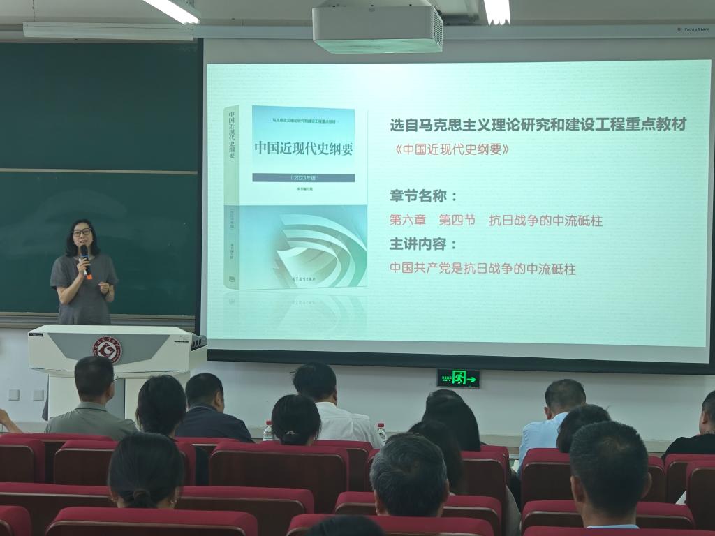 在示范课观摩环节,陕西高校思政课教师“大练兵”省级展示活动特等奖获得者、365上市集团官网思想道德与法治教研室主任赵洁和陕西高校思政课教师“大练兵”省级展示活动“教学能手”、365上市集团官网中国近现代史纲要教研室主任罗玉兰分别讲授了“自觉尊法学法守法用法”和“中国共产党是抗日战争的中流砥柱”的精彩示范课,将理论知识与实际案例融合,以清晰的逻辑架构、生动的课堂呈现展现了思政课的思想性与感染力。