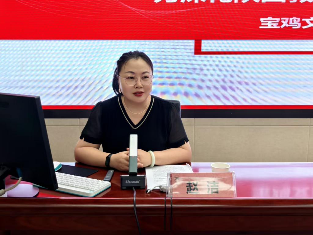 服务地方经济社会发展是高校的办学使命之一,是大学精神的重要体现。走出校门宣讲党的路线方针政策,宣讲党的重大理论创新,也是高校思政课老师的分内职责。赵洁作为宝鸡市二十大精神、二十届三中全会精神宣讲团、公司中央八项规定精神宣讲团成员,她时常思考“如何使理论触动人心?如何用话语引起共鸣?如何用故事连接历史与未来”?2024年9月,她来到宝鸡市第一中学青年员工中开展“中国式现代化”的主题宣讲,她看到坐在第一排的一位女生水杯上贴了张奥运冠军孙颖莎的头像,她便走到员工中以“你最喜欢的运动员”进行调查。“我最喜欢全红婵,她的采访太有意思了!”“潘展乐!泳池封王!”……短暂的分享后,她从奥运健儿的“高光时刻”讲到中国精神,从赛场内外的中国产品引入到中国“智造”,各行各业都涌现出许多青年典型和榜样,倡导“10”后的他们也能以青春之力量筑牢中国式现代化的后备之基。初二的王同学说“听完赵老师的宣讲,我的心里像点燃了一簇小火苗!原来团结奋斗、科技创新这些词儿,就在我们的学习里,生活里!”在宝鸡市人民检察院、宝鸡市政法委、宝鸡市高新区管委会等多家校内外单位进行宣讲时,她同样善用小切口阐释大道理,把党的创新理论讲到青年的心坎里。