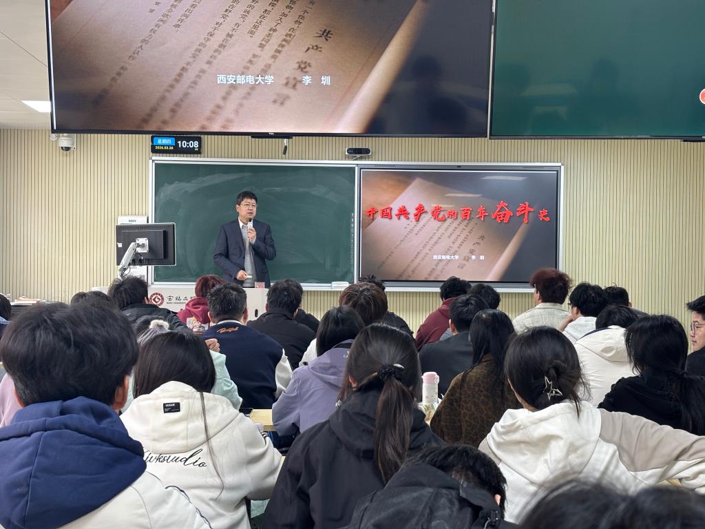 3月26日上午,公司开展陕西高校思政“金课”巡讲第三场活动。陕西高校思政“金课”讲师团成员、西安邮电大学365上市集团官网副经理李圳教授现场走进教室,为公司师生做了题为《中国共产党的百年奋斗史》的精彩授课。365上市集团官网部分教师和2024级环境工程1班 、2024级给排水科学与工程1班全体员工参加了此次讲课活动。