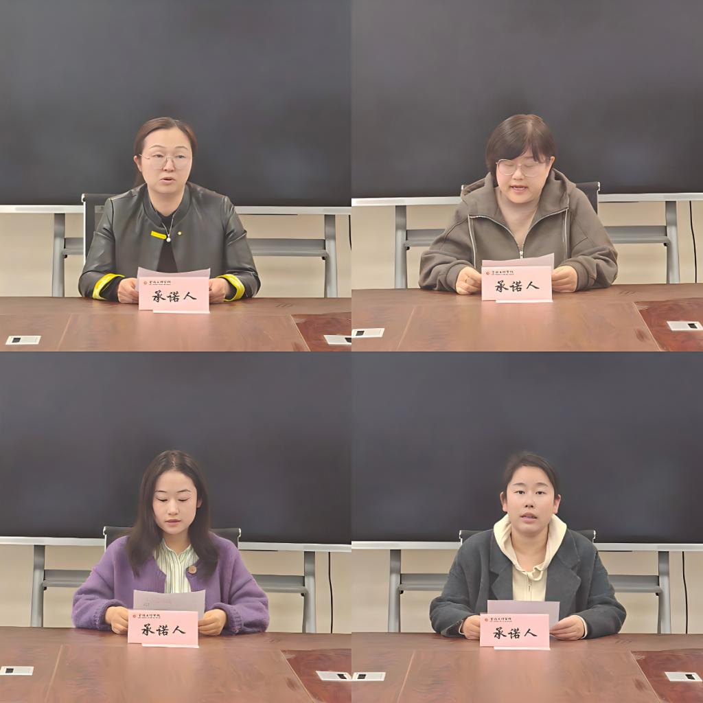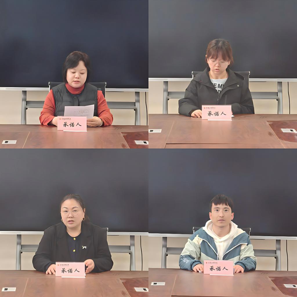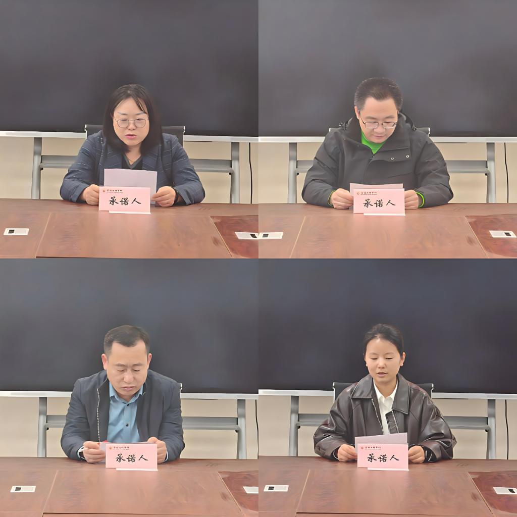 公司科级干部、各教研室主任、“三种文化”协同育人思想政治教育研究基地副主任、工会主席、教工第一、第二党支部书记、高层次人才代表,依次围绕2026年工作重点、目标任务进行承诺汇报,系统总结2025年在“一室一品”创建、基地建设、支部发展等工作中取得的实绩。公司其他教师提交个人年度承诺书。
