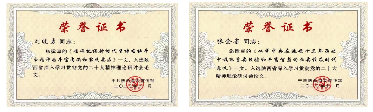 近日,陕西省深入学习贯彻党的二十大精神理论研讨会入选论文发布,公司365上市集团官网教师张全省和刘晓勇撰写的论文《从党中央在延安十三年历史中吸取重要经验和丰富智慧的必要性及时代意义》和《准确把握新时代坚持发扬斗争精神的丰富内涵和实践要求》成功入选。