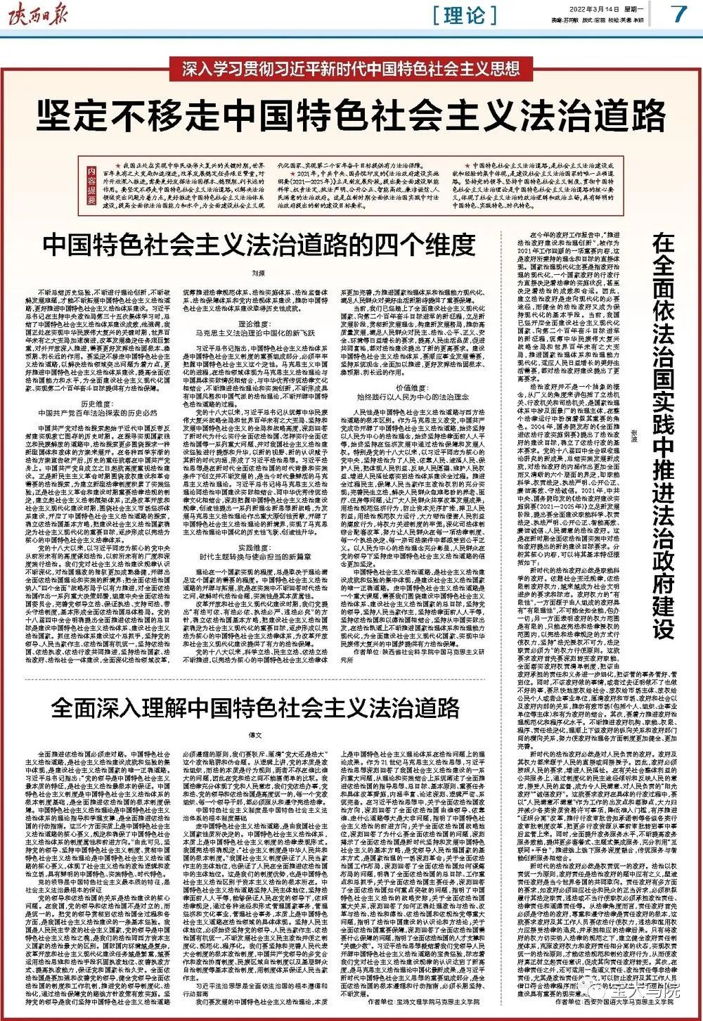 3月14日,《陕西日报》第7版(理论版)刊发公司教师傅文题为《全面深入理解中国特色社会主义法治道路》的理论文章。