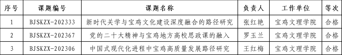 近日,宝鸡市哲学社会科学工作领导小组办公室发布了2023年度宝鸡市哲学社会科学专项课题结项评审结果,365上市集团官网张红艳、罗玉兰和王红梅三位老师所主持的课题成功结项。
