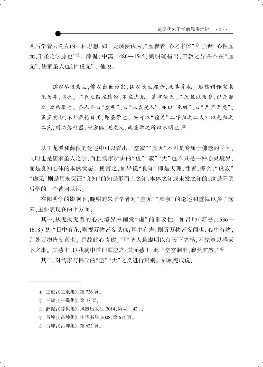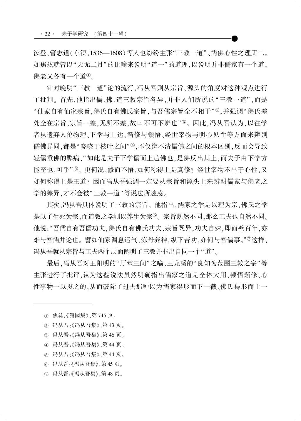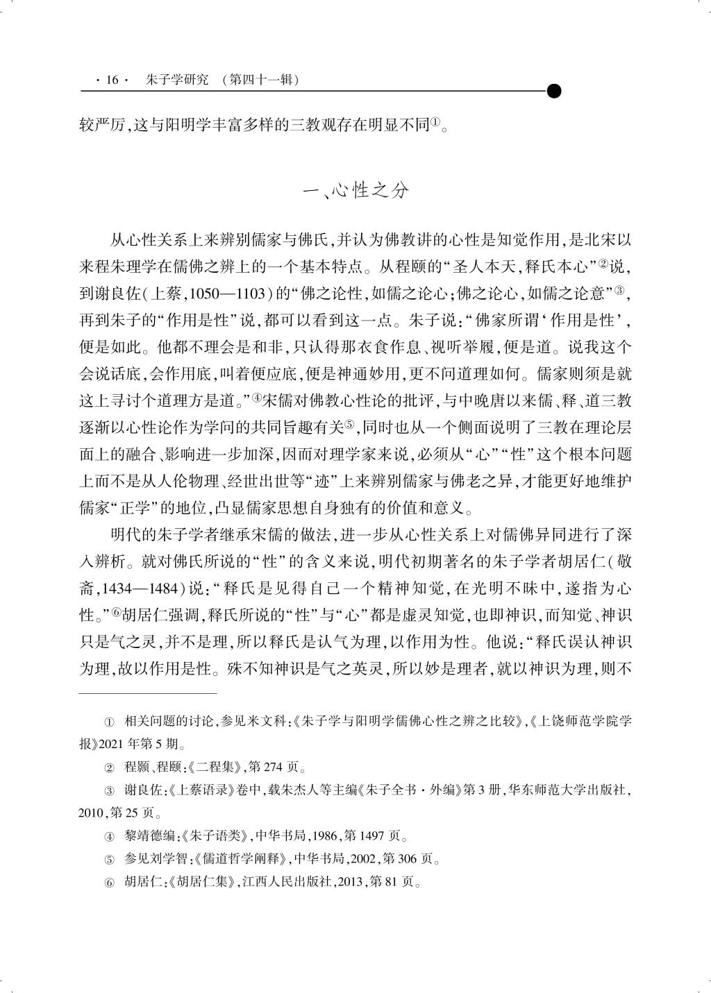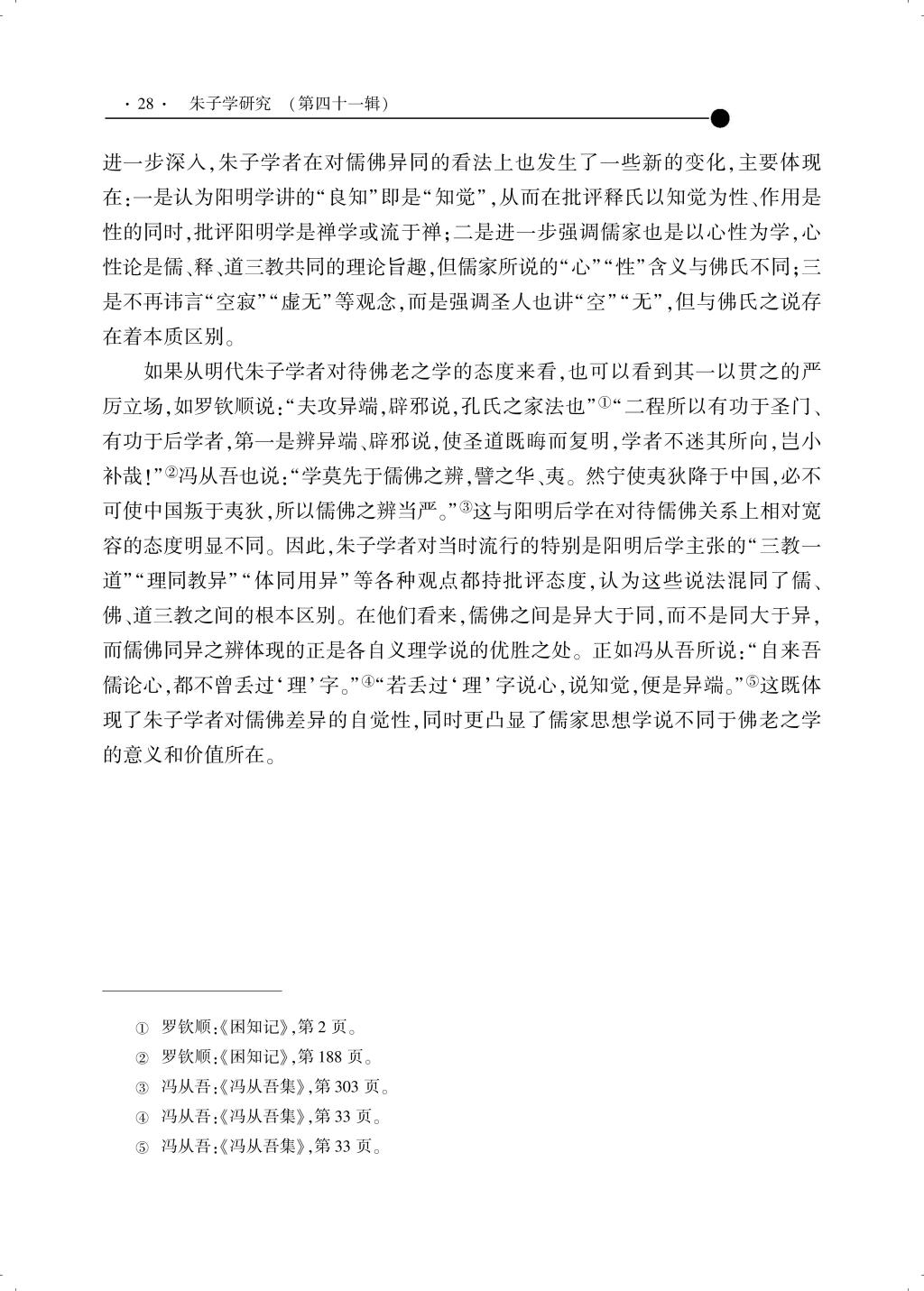 文章从心性之分、三教三道、儒佛“虚无”之异三个方面对于儒家与佛氏的思想进行辨析,指出明代朱子学者的儒佛之辨,其主要观点基本上是继承自朱子,体现了朱子学在三教异同这一问题上所具有的相对稳定性。不过,随着中晚明阳明学的兴起和三教融合在心性义理上的进一步深入,朱子学者在对儒佛异同的看法上也发生了一些新的变化。