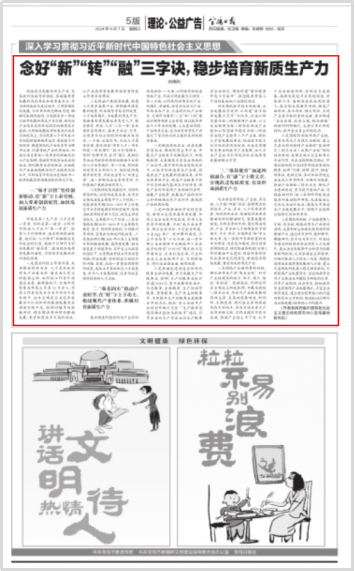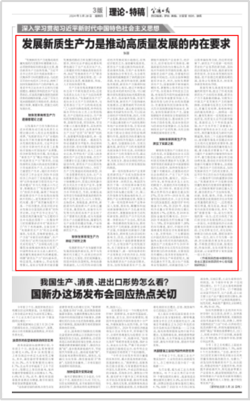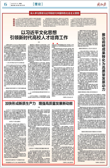 3月29日,《中国教育报》网络平台刊发了中特中心研究员聂晓静副教授和刘晓勇教授合著的理论文章《构建具有区域特色的新质生产力》。