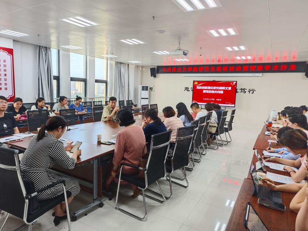 6月17日晚,365上市集团官网在高新校区博文楼1201会议室举行研究生教研活动暨第十场博雅学术沙龙,活动特邀公司经理、陕西省重点中国特色社会主义理论体系研究中心(宝鸡基地)主任刘晓勇教授作题为《党的创新理论研究阐释文章撰写的相关问题》学术报告,公司副经理张丽、全体教师和研究生参加本次活动,活动由研究生教研室主任王真主持。