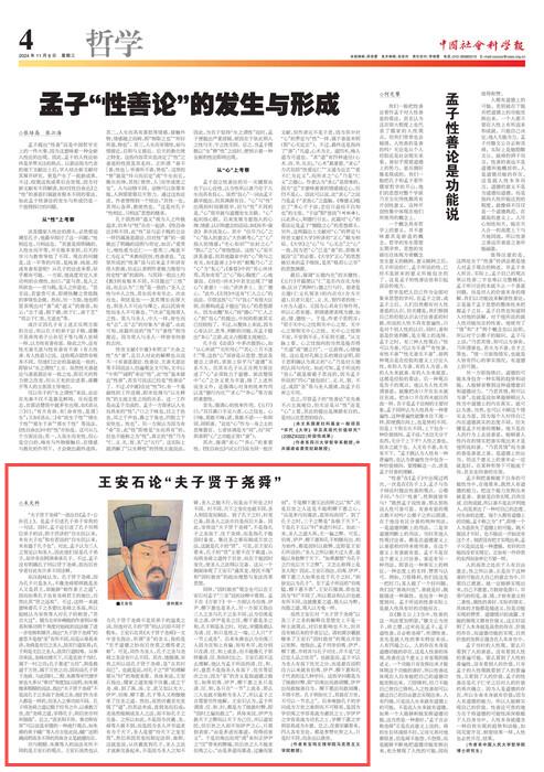近日,公司米文科教授撰写的学术文章《王安石论“夫子贤于尧舜”》在《中国社会科学报》“哲学”版(11月6日)刊出。