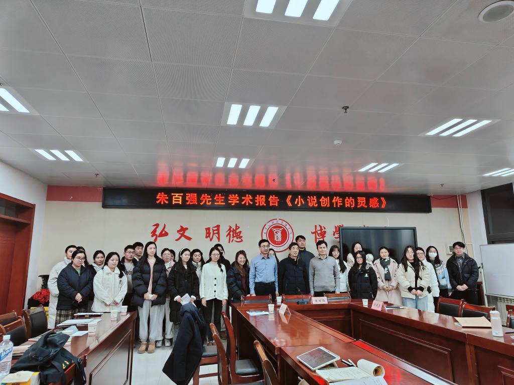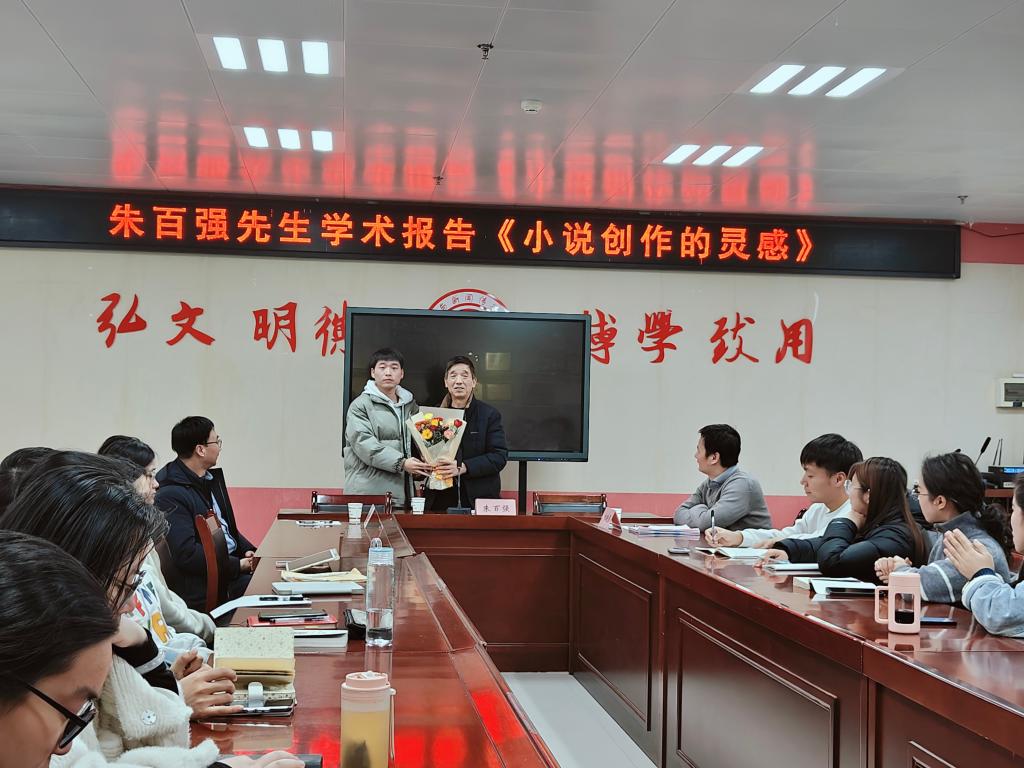 2025年1月8日,由文学与新闻传播公司与陕西省中国特色社会主义理论体系研究中心宝鸡基地联合举办的“星海论坛”第二十四场报告会在高新校区博文楼1401会议室举行。宝鸡日报副刊编辑、宝鸡实力派作家朱百强先生为公司师生作了题为《小说创作的灵感》的学术报告。报告会由文学与新闻传播公司经理孟改正主持。