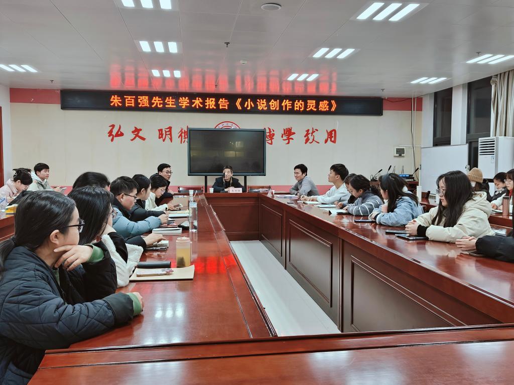 报告会上,朱百强先生围绕文学创作的“灵感”源于何处这个话题,从三方面阐明了灵感来源于生活、来源于阅读思考、来源于发现共鸣,并且引用了中外著名作家或经典著作加以阐释分析。朱百强先生还通过介绍自己的创作历程鼓励大家多看多听多写,做个生活中的有心人,寻找出属于自己的表达方式,能够将文字锤炼地有滋有味。报告会后,朱百强先生还同与会研究生就小说创作的态度和方法进行了交流。整个报告会,气氛热烈,充满互动,给人以思索和回味。