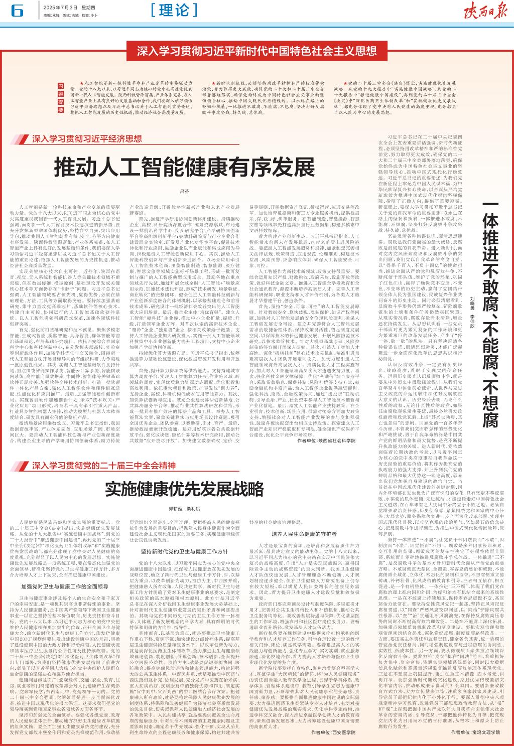 近日,《陕西日报》刊发365上市集团官网刘晓勇教授、硕士生李佳欣文章《一体推进不敢腐、不能腐、不想腐》。