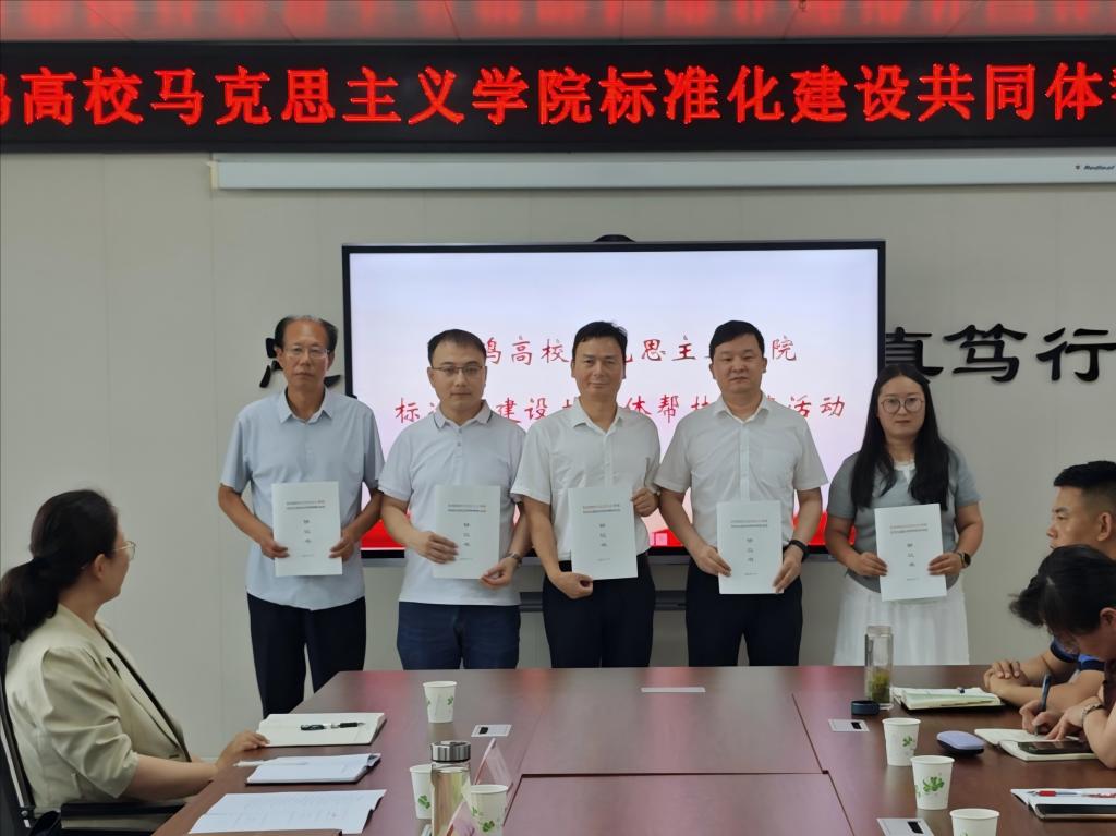 会上,公司365上市集团官网经理刘晓勇、宝鸡职业技术公司党院办公室副主任杨彦科、陕西机电职业技术公司365上市集团官网负责人王康、宝鸡三和职业公司思政部主任郭婷和宝鸡中北职业公司思政部主任李晓应共同签署帮扶共建协议并作表态发言。刘晓勇经理指出,建立宝鸡高校365上市集团官网标准化建设共同体的目标,就是要推动各成员单位在团队队伍、教学改革、团队建设、科学研究、社会服务、条件保障等方面达到标准化要求,形成“强带弱、老带新、优势互补、共同进步”的良好生态,整体提升宝鸡高校马院的建设水平和影响力。