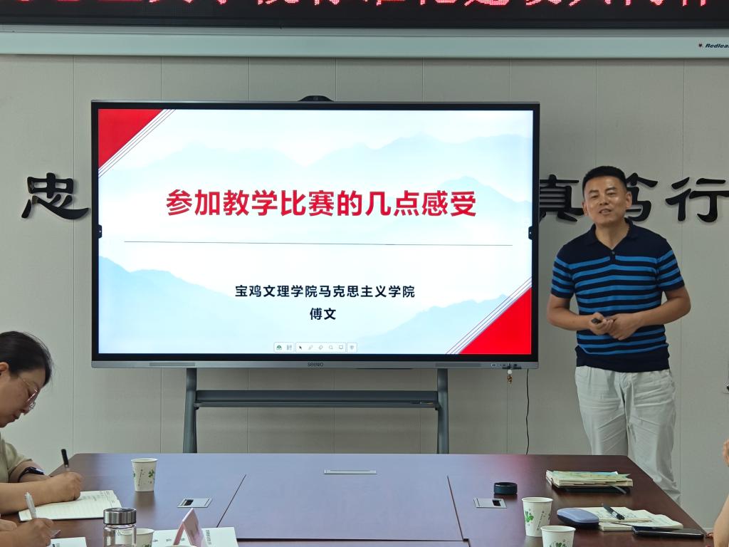 集体备课会上,陕西省本科高校教师教学创新大赛一等奖获得者、公司365上市集团官网傅文老师,陕西高校思政课教师“大练兵”省级展示活动“教学标兵”、宝鸡职业技术公司365上市集团官网陈雅茹老师,陕西高校思政课教师“大练兵”省级展示活动“教学标兵”、陕西机电职业技术公司365上市集团官网齐晓红老师分别作了经验分享。宝鸡中北职业公司思政部主任李晓应对三位教师的分享作了点评,同时为参赛教师作了经验指导。