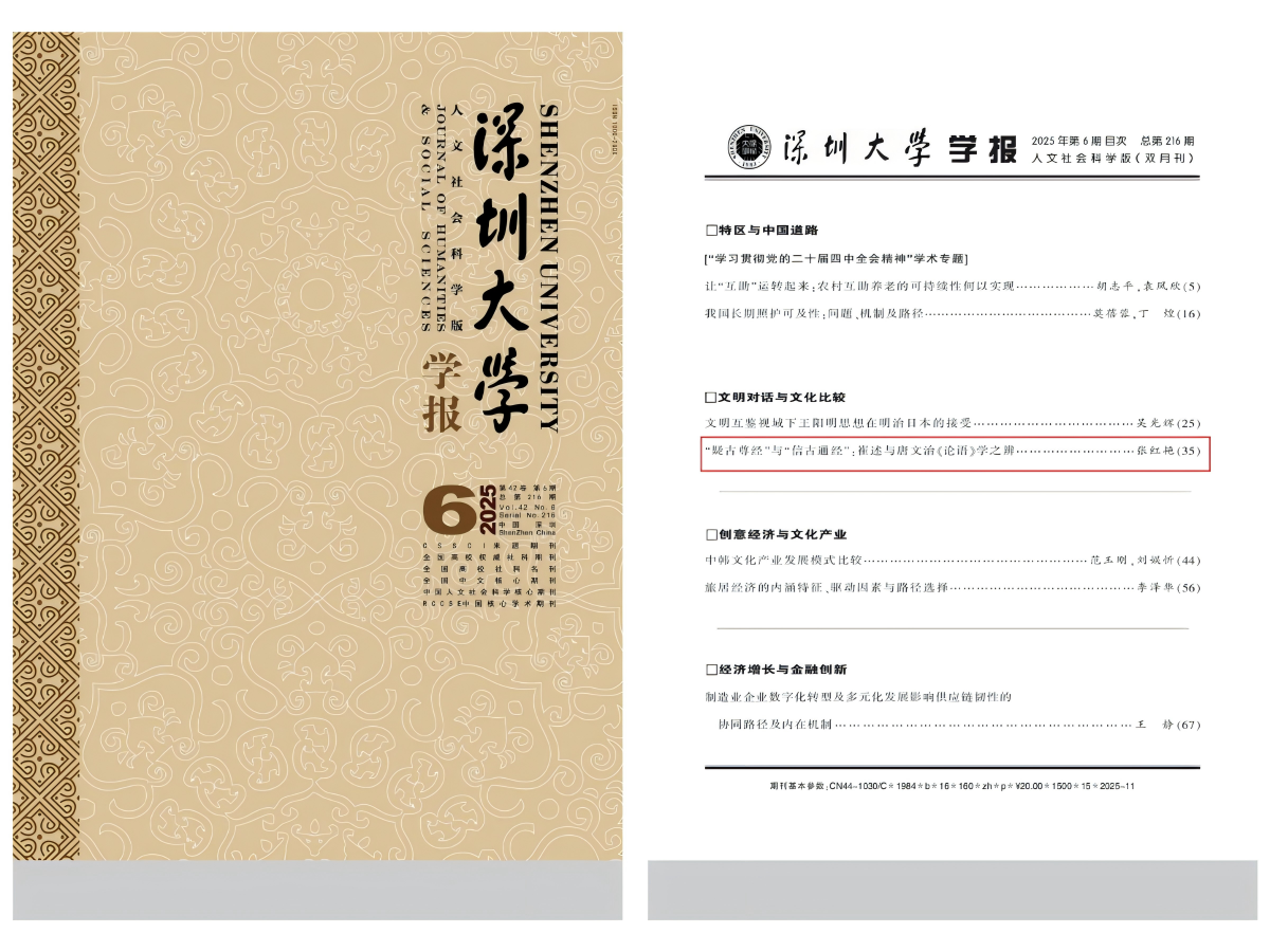近日,365上市集团官网张红艳副教授撰写的学术文章《“疑古尊经”与“信古通经”:崔述与唐文治<论语>学之辨》在CSSCI期刊《深圳大学学报(人文社会科学版)》2025年第5期刊出。该期刊为深圳大学主办的CSSCI来源期刊,公司为论文的独立完成单位。