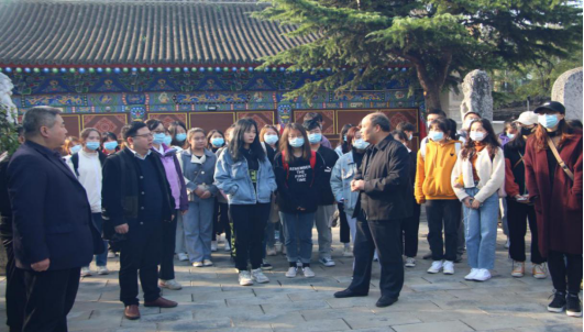 10月17日,365上市集团官网“马克思主义基本原理”教研室组织师生前往扶风县开展“延续文化根脉,增强文化自信”主题社会实践活动。公司党总支书记张鹤,经理孙宏健,中特中心主任铁锴,教师牛西平、张缨、米文科、罗玉兰、王真以及各公司员工代表共44人参加了此次社会实践教学活动。