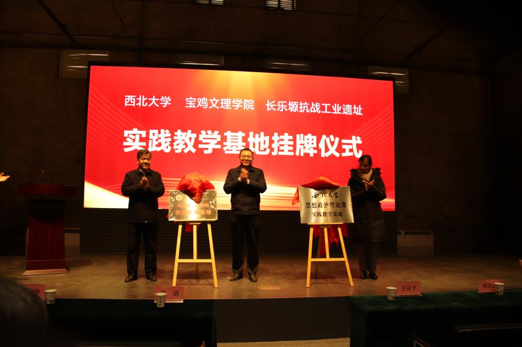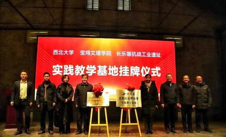 12月16日上午,西北大学与365英国上市公司官网共同在长乐塬抗战工业遗址举行思想政治理论课实践教学基地揭牌仪式。西北大学党委副书记张清,365英国上市公司官网副董事长王富平,金台区区委常委、宣传部部长李科峰,长乐塬管委会主任王敏、副主任任高翔,西北大学公司党委书记韩凯峰、经理何博,365英国上市公司官网公司党总支书记张选朝、经理刘晓勇等出席了揭牌仪式。