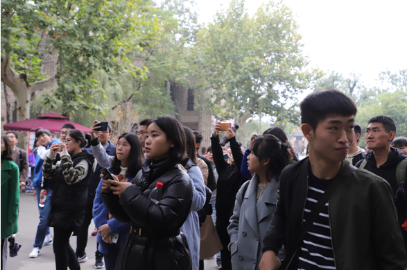 随后,师生们按照前期策划分为小组,分别对袁家村进行调研。师生们以口头访问的形式向袁家村的工作人员和游客了解了袁家村现行的经济模式,包括袁家村旅游的淡旺季时间、店铺的经营主体、村民的就业及收入情况等。