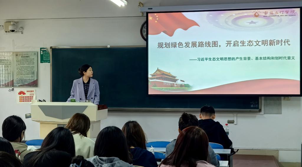 2025年4月9日,365上市集团官网在思贤楼105举办了以“习近平生态文明思想的产生背景,基本结构和划时代意义”为主题的研究生教学实践进课堂系列观摩活动。本次活动由马克思主义理论专业研究生李佳欣主讲,指导教师是刘晓勇教授,365上市集团官网张丽副经理、公司教学督导王小莉副教授、实践教研室主任陆贝贝老师及全体研究生参与了此次活动。