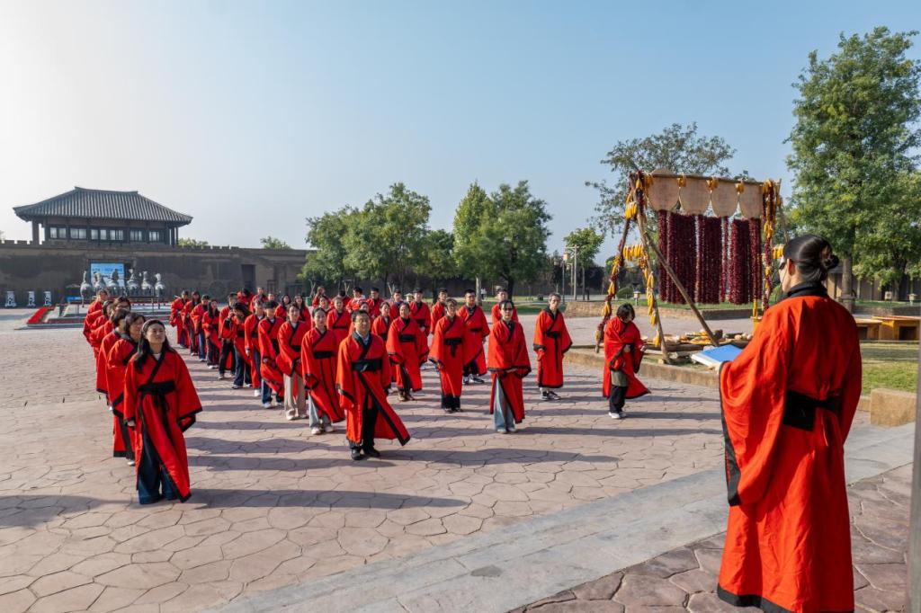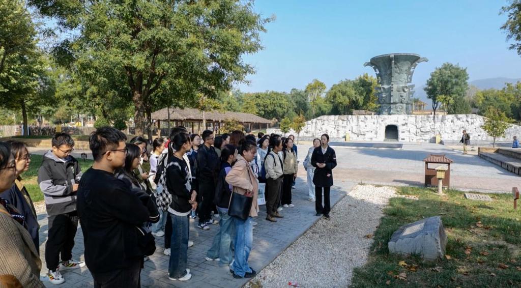 为弘扬中华优秀传统文化,坚定文化自信,公司社会实践教研室于10月13日组织文传院、美术公司、化工院、地环院、数信院、机械工程公司、历史文化与旅游公司、体育公司等公司部分本科生前往宝鸡市岐山县,开展以“寻觅周人印记 传承礼乐文明”为主题的思政课社会实践活动。师生们通过参观明堂、中轴文化景观带、周文化博物馆、周公庙,以及现场举行的《颂周公》、学周礼、制作青铜器等教学活动,与中华优秀传统文化进行近距离接触,感受中华礼乐文明的魅力。